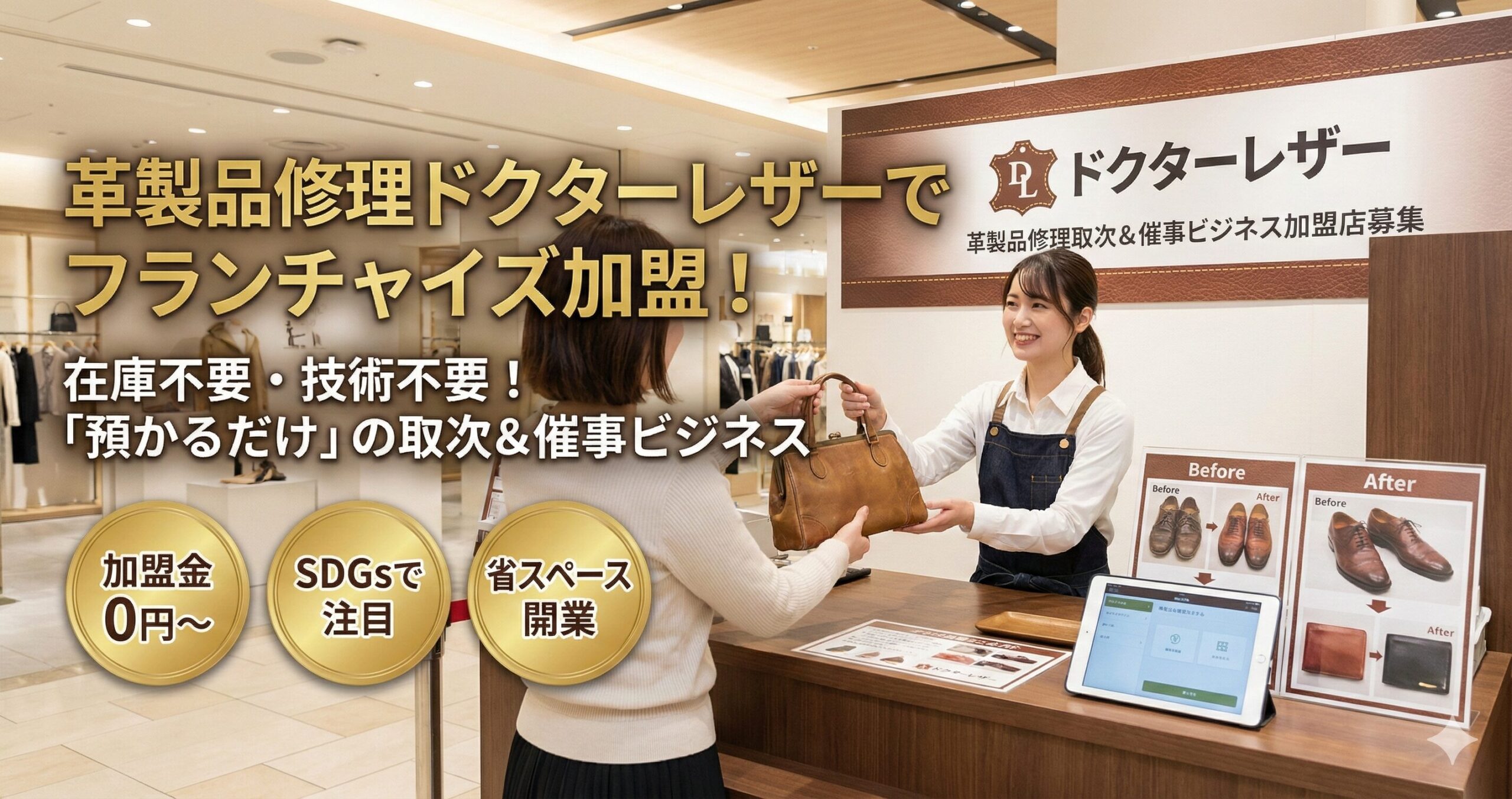 革製品修理ドクターレザーでフランチャイズ加盟!在庫不要で始める取次&催事ビジネス