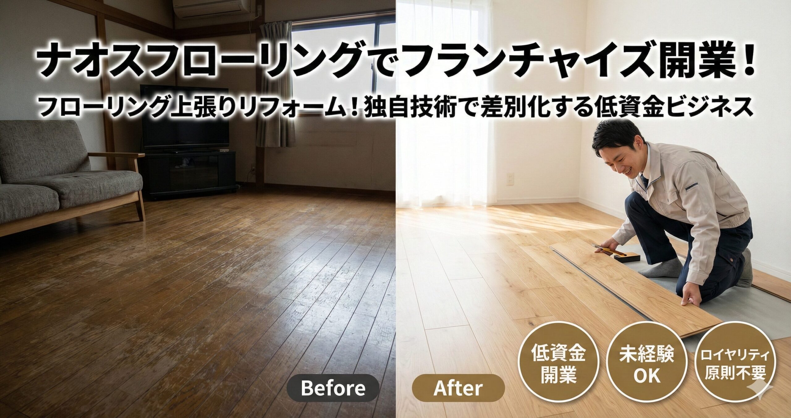 【ナオスフローリング】フローリング上張りリフォームでフランチャイズ開業!独自技術で差別化する低資金ビジネス