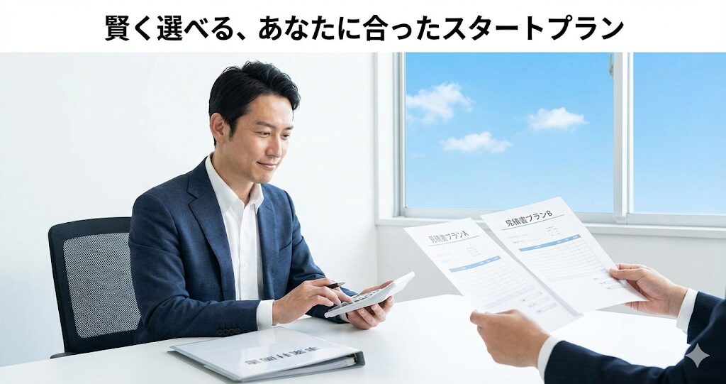 それでは、ここからは具体的なお金のお話、開業プランについて見ていきましょう。個太郎塾では、オーナー様の資金状況に合わせて選べる2つのプランが用意されています。