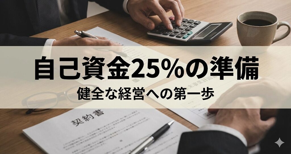 ここで特に注意が必要なのは、「店舗購入価格の25%を、借入に頼らず自己資金で用意する必要がある」という点です。例えば、収益性の高い優良店舗を取得しようとすると、その価格は数千万円から1億円を超えることも珍しくありません。その25%となると、かなりの金額をご自身で準備しなければならないということです。