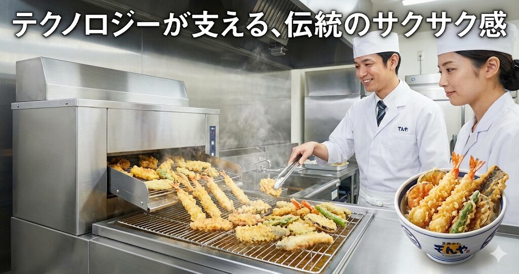 誰が調理しても、いつ食べても、サクサクで美味しい天ぷらが提供できる。この「味の均一化」と「オペレーションの簡素化」こそが、「てんや」が多店舗展開に成功した最大の理由と言っても過言ではありません。揚げ物は温度や時間が少しずれるだけで味が変わってしまう繊細な料理ですが、このシステムがあれば、未経験のスタッフさんでも自信を持ってお客様に商品を提供できますよね。
